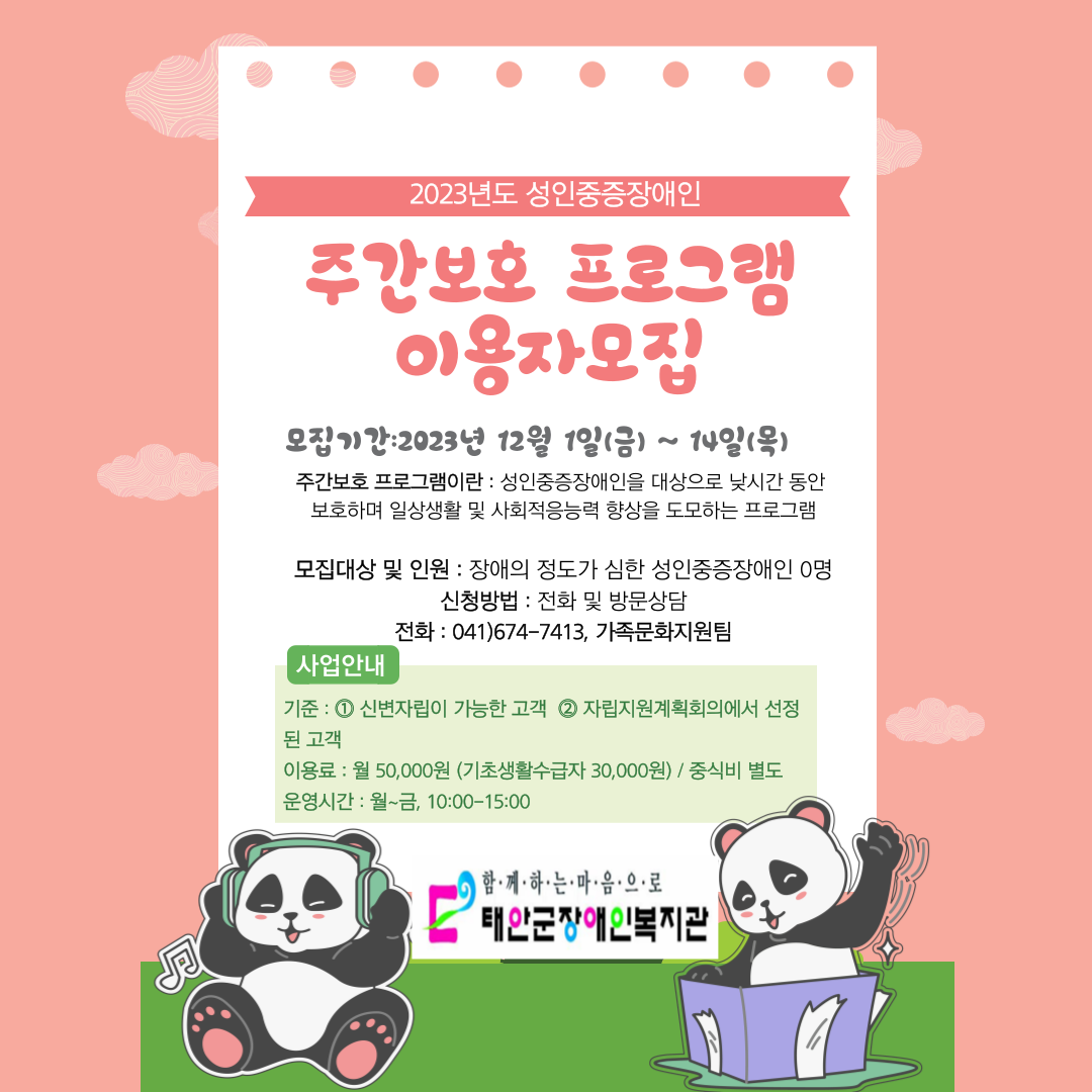 태안군장애인복지관 2023년 후원금 수입 및 사용 내역 공고