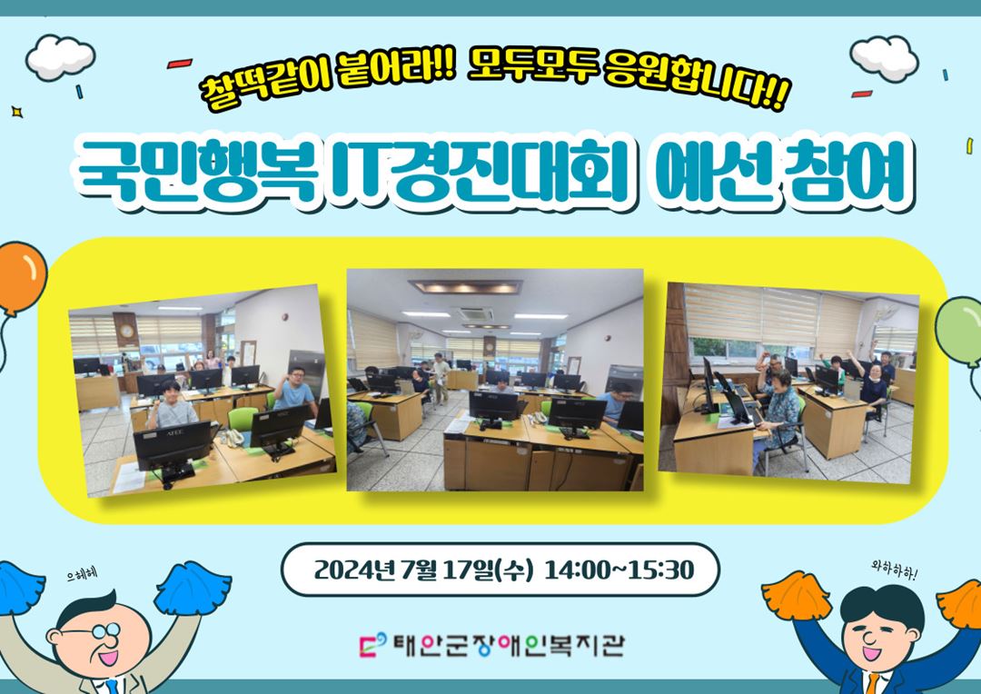 국민행복IT경진대회 예선 평생교육지원팀윤정현 0 1174 2024.07.18 17:58 국민행복 IT 경진대회 예선이 2024년 7월 17일(수) 오후 14:00~15:30 에 복지관내 정보화 교육실에서 열렸다. 뜨거운 열정으로 대회에 참여하시며 열심히 문제를 풀어보시는 모습들을 보여 주셨다.