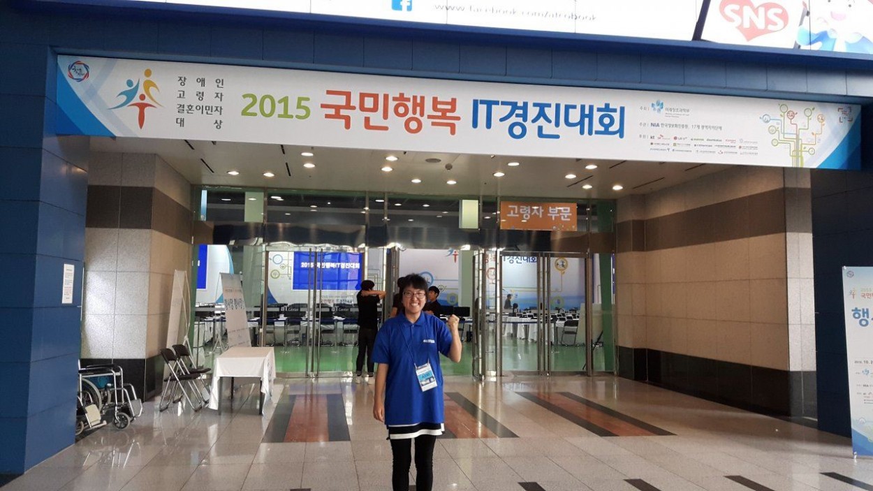 2015 국민행복IT경진대회 본선 참가 강영미 0 2236 2015.10.22 13:14 2015년 5월 13일(수) 10:00~11:30 국민행복IT경진대회 지역예선대회를 거쳐 2015.10.20일 서울양재동 aT센터 1층에서 전국에서 예선전에 통과한 장애인, 고령자, 결혼이민자들이 한자리에 모여서 본선대회를 하였음 결과는 본선에 진출한것도 굉장한 일이라서 좋은 경험을 쌓고 돌아오는 계기가 되었음