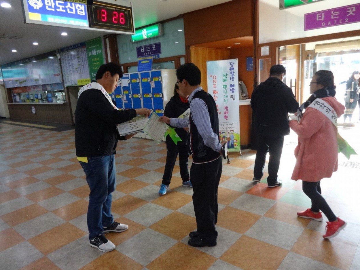 장애인식개선 거리캠페인 실시 방연옥 0 2691 2014.11.06 10:29 본 복지관의 직원 및 사회복무요원 20여명은 11월5일(수)오후 태안읍내 지역주민을 대상으로 장애에대한 편견을 없애고 장애인과 비장애인이 하나되어 행복한 세상을 이루고자 태안읍 전역을 다니며 장애인식개선 거리캠페인을 진행하였다. 이날 캠페인에 나선 직원들은 만나는 주민 한명한명에게 장애는 틀림이 아닌 다름일 뿐이며 우리의 편견이 장애인을 더 힘들게 한다는 사실을 알리고자 하였다.