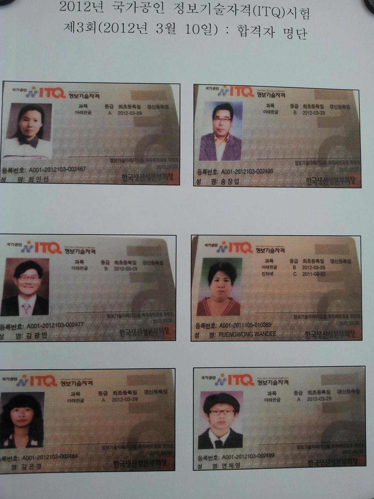 정보화교실에서 ITQ자격증을 취득했습니다. 강영미 0 2748 2012.05.11 13:26 저희 복지관 정보화교실에서는 자격증에 도전하여 3월 10일에 6명이 합격을 했고 4월 14일에는 4명이 합격을 하였습니다. 그리고 내일 5월 12일 토요일에 또 시험보러 4명 갑니다.