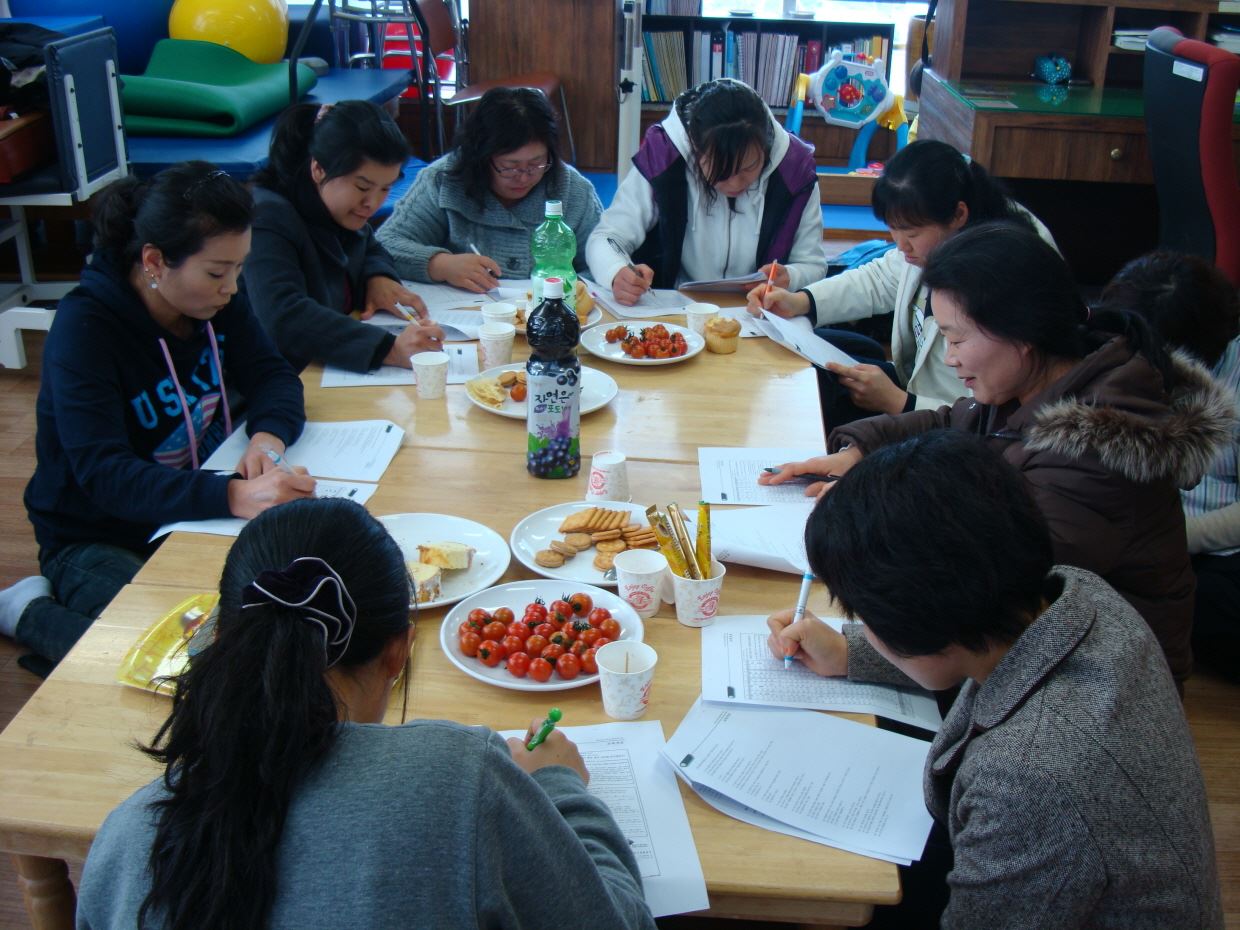 부모회&맘스교실 1회 모임 윤혜영 1 2193 2011.03.23 16:21 2010년 3월 15일 오전 10시 10분에 부모회&맘스교실 1회모임을 실시했습니다. 총 10분께서 참석해주셨구요 첫번째사진은 관장님께서 인사말씀중이시고요 두번째사진은 MMPI검사를 통해 서로의 성격유형을 알아보는 시간을 가졌습니다. 시간이 안되서 참석 못하신 분들도 계셨는데요 3월 ~ 6월, 9월 ~ 12월까지 월 1회 모임을 가지니 다음엔 꼭 참석해주시구요 저희 회장님은 김은경 어머니(연제선), 총무는 정옥희 어머니(정우석) 이십니다. ^ㅡ^ 한해동안 수고해주세요 ^ㅡ^