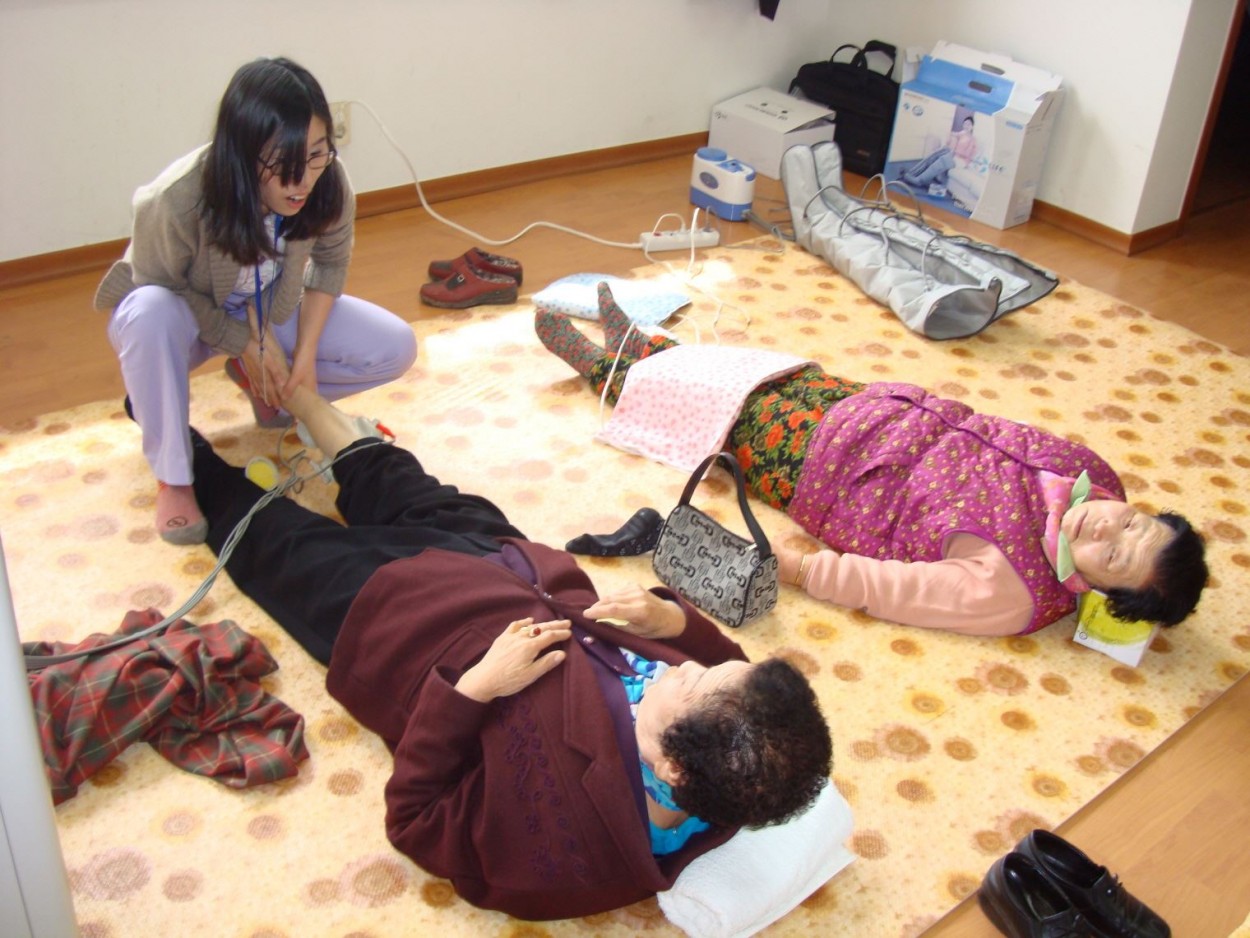 이동복지관사업 중 인기가 좋아 항상 사람이 집중되는 물리치료서비스.