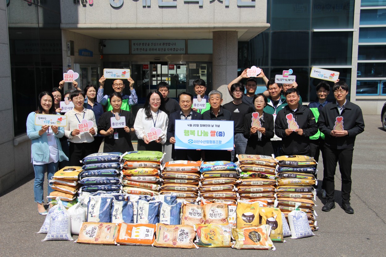 서산수협, 장애인의 날 맞아 지역 장애인 위해 쌀 기탁 복지관 0 6 3시간전 서산수협 장문수 조합장과 태안군장애인복지관 이종만 관장 및 관계자들이 지난 4월 16일에 장애인의 날을 맞아 지역 장애인을 위한 쌀 전달식을 갖고 기념촬영을 하고 있다.