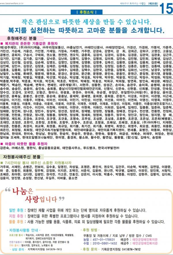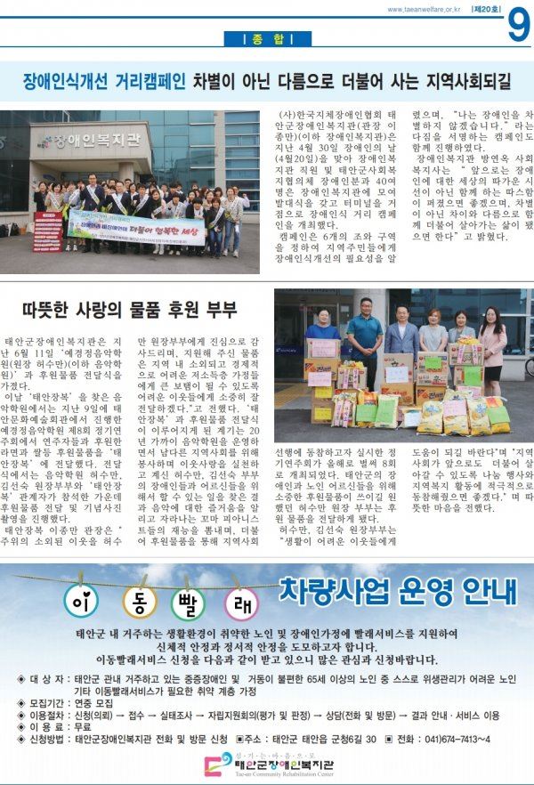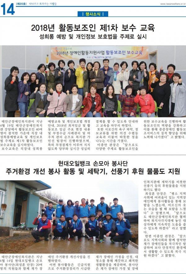태안군장애인복지관 소식지 20호 입니다