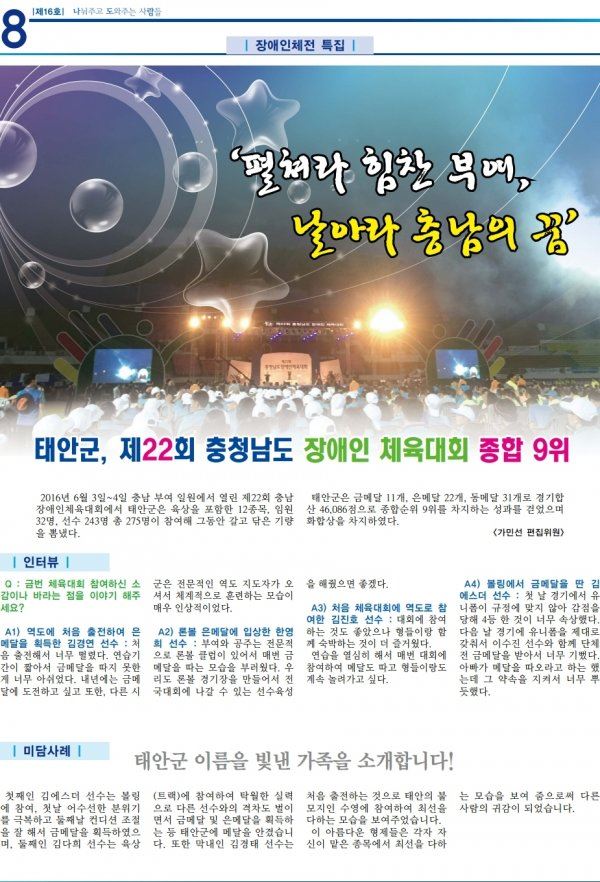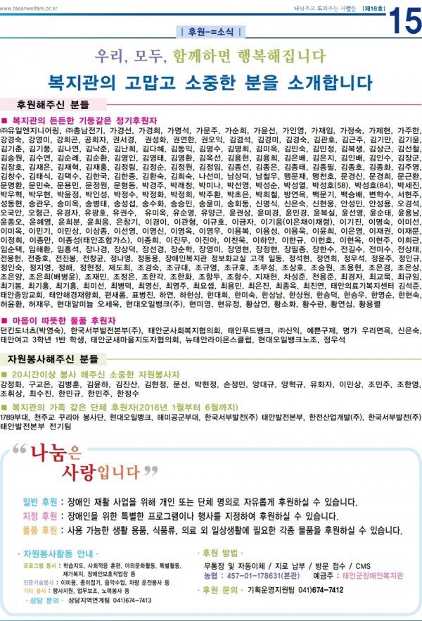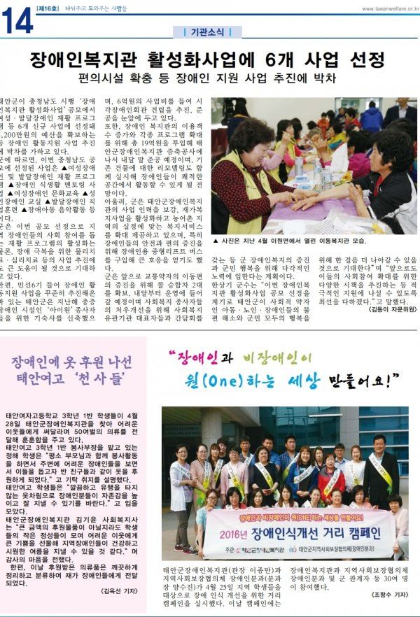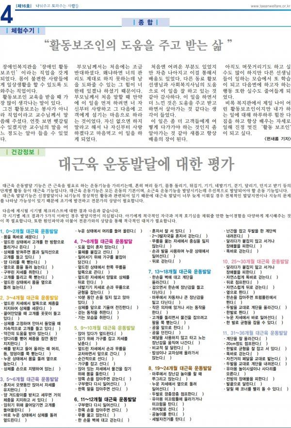 태안군장애인복지관 소식지 16호 입니다