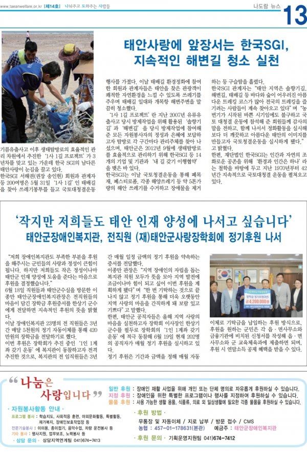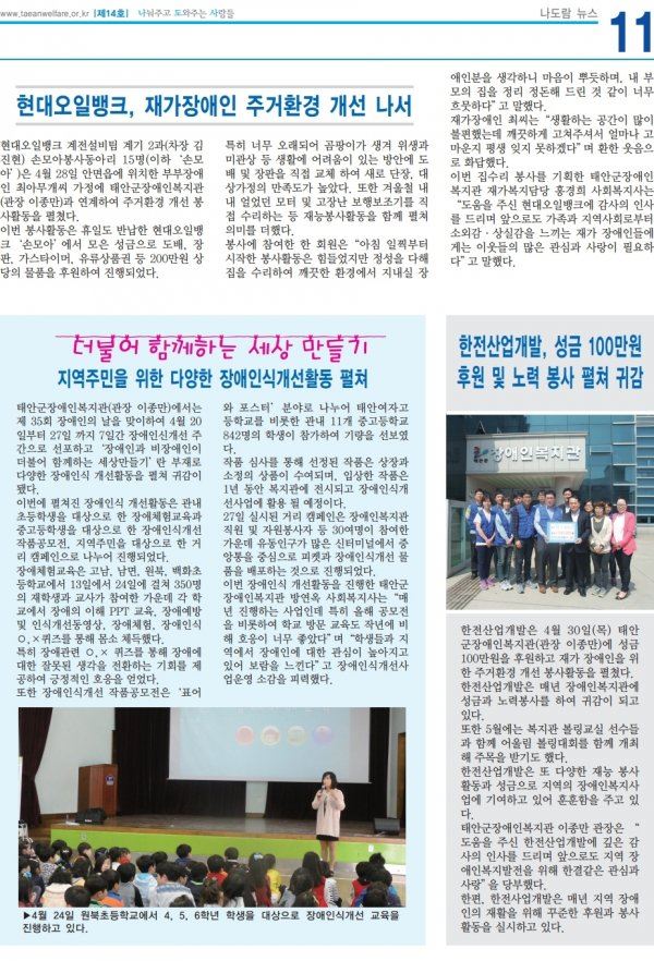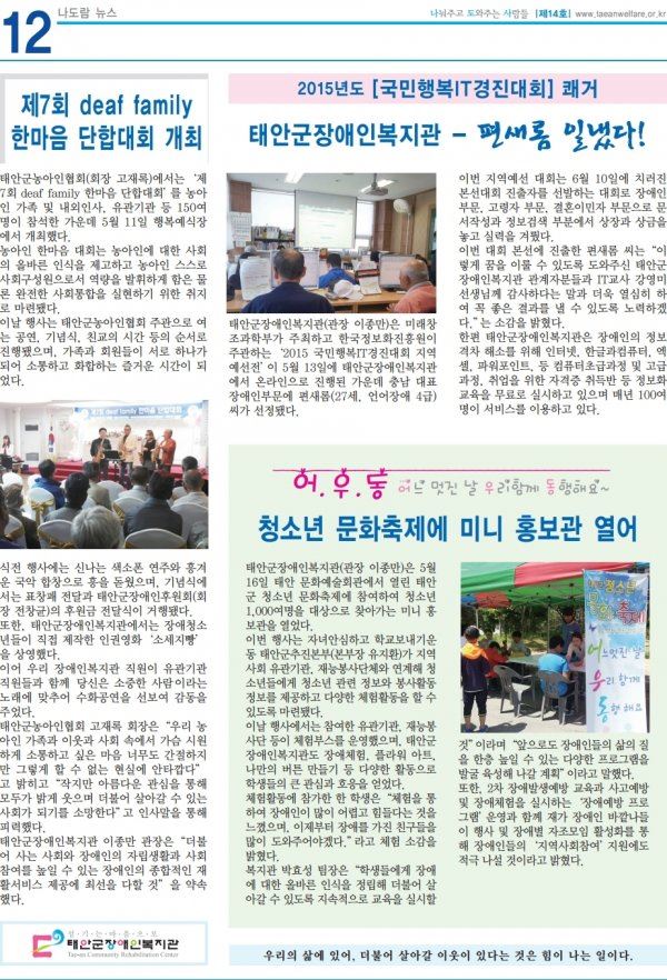태안군장애인복지관 소식지 14호 입니다