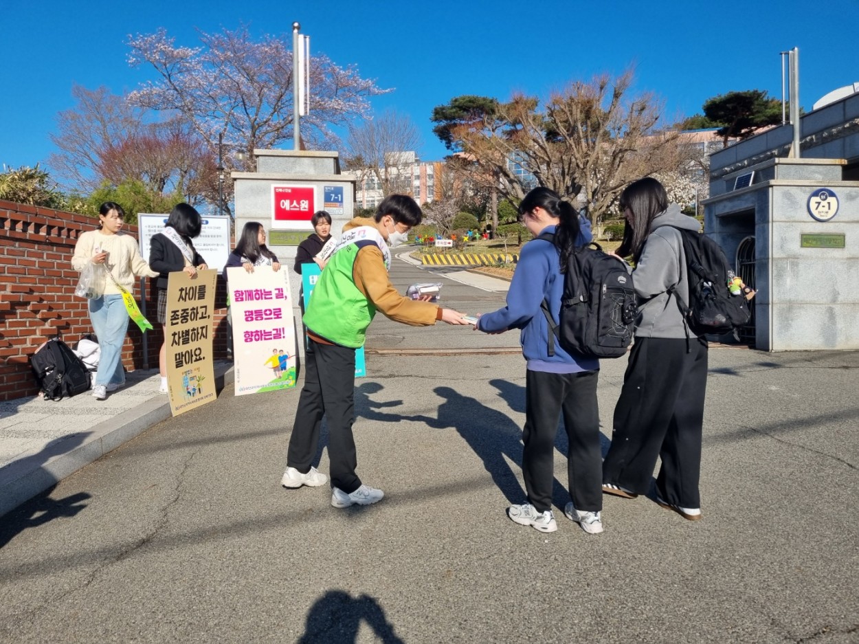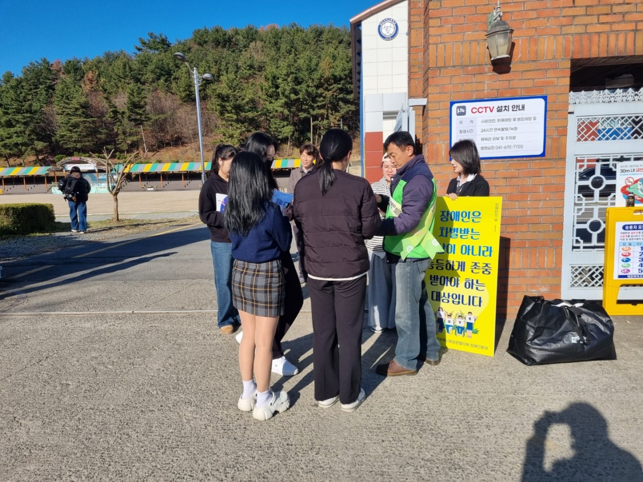 이날 캠페인에서는 장애에 대한 편견을 줄이고 공감대를 형성하기 위해 제작된 피켓을 활용하고안내 유인물을 배부했으며참여 학생들에게 소정의 기념품을 전달하며 장애 인식 개선 메시지를 전했다특히 등굣길이라는 일상적인 공간에서 진행돼 학생들이 부담 없이 캠페인에 참여하며 의미를 되새기는 계기가 됐다.