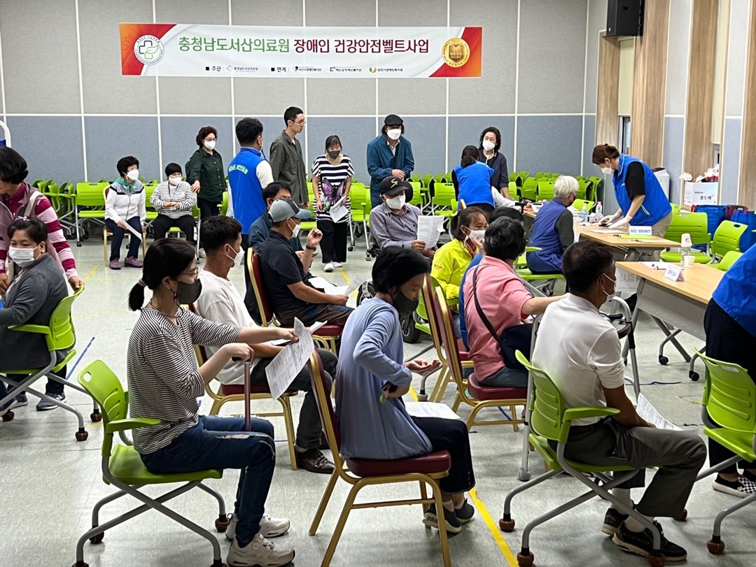충청남도서산의료원 장애인 건강안전벨트사업 진행 기획연계팀함종우 0 1221 2023.09.28 10:41 지난 9월 26일 서산의료원과 연계하여 우리복지관에서 장애인을 위한 건강검진을 진행했습니다.