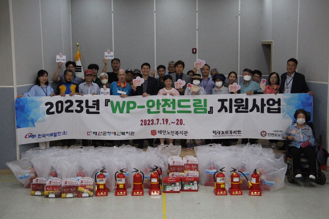 한국서부발전(주) 재난안전용품 전달식 지역복지지원팀이윤희 0 1352 2023.07.20 16:30 7월 19일 태안군 장애인복지관 강당에서 한국서부발전(주)재난 안전용품 전달식이 있었습니다.한국서부발전(주)안전경영실 재난지원부,백화노인복지관, 태안군장애인복지관 직원 및 장애인이용자분들이 참여하여 전달식을 진행하였습니다.