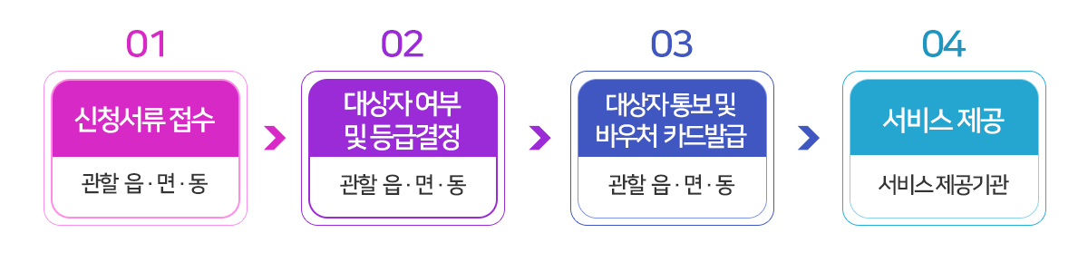 - 지원기준 : 한쪽 부모 및 조손가정의 한쪽 조부모가 시각 · 청각 · 언어 · 지적 · 자폐성 · 뇌병변 등록장애인